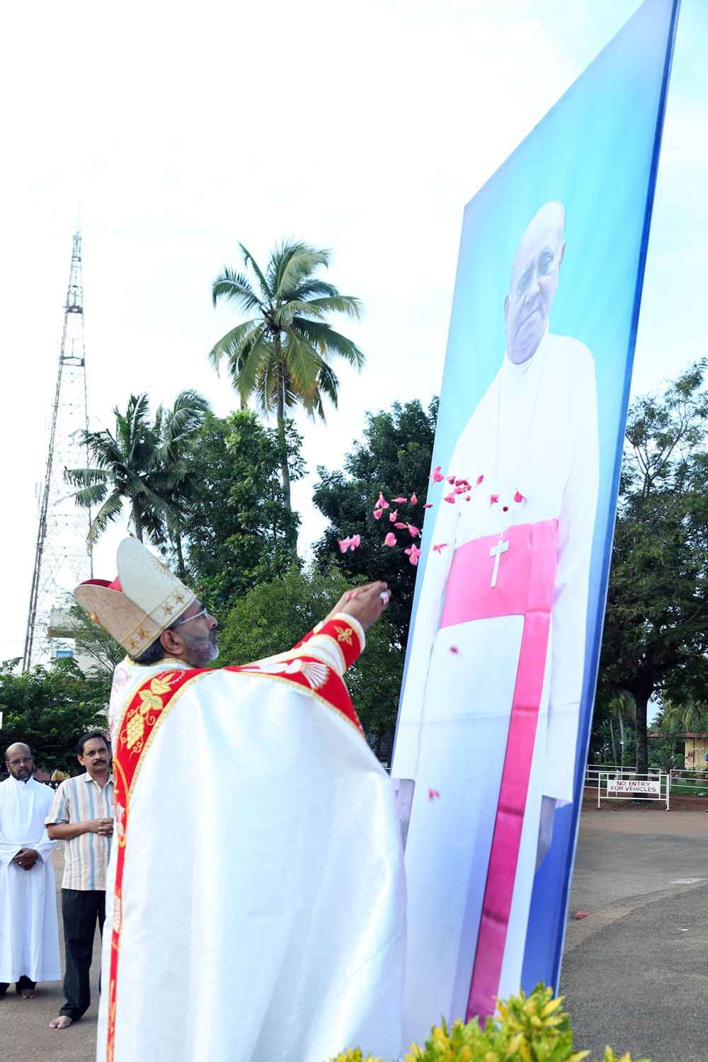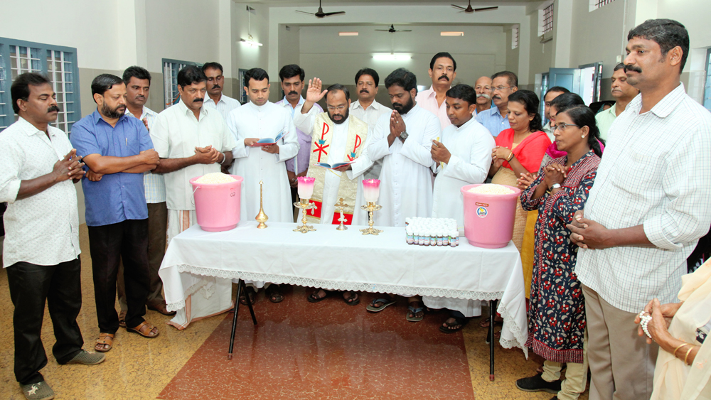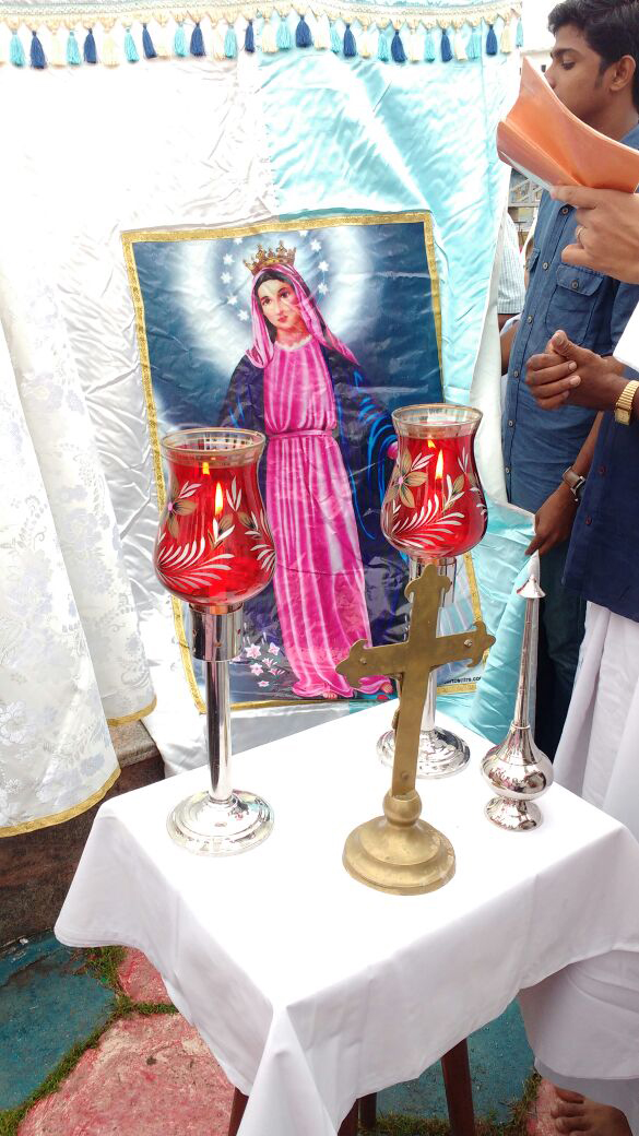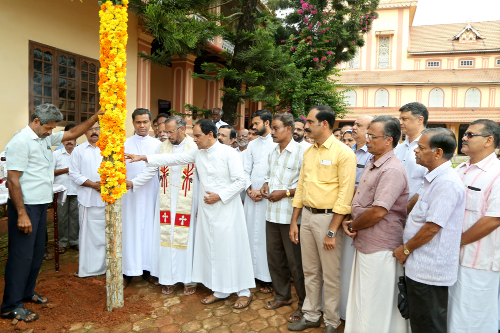 Construction of Panthal for Emmanuel 2016 began in a spiritual atmosphere. To day in the morning Vicar General Msgr Anto Thachil blessed the first pillar for the Panthal. All the faithful praised and worshipped the almighty God. Cathedral Vicar Fr. Joy Kadambatt, Asst Vicars, Trustees, convention conveners, Preshitha koottayma members and a considerable number of faithful witnessed the beginning of a great spiritual renewal program.