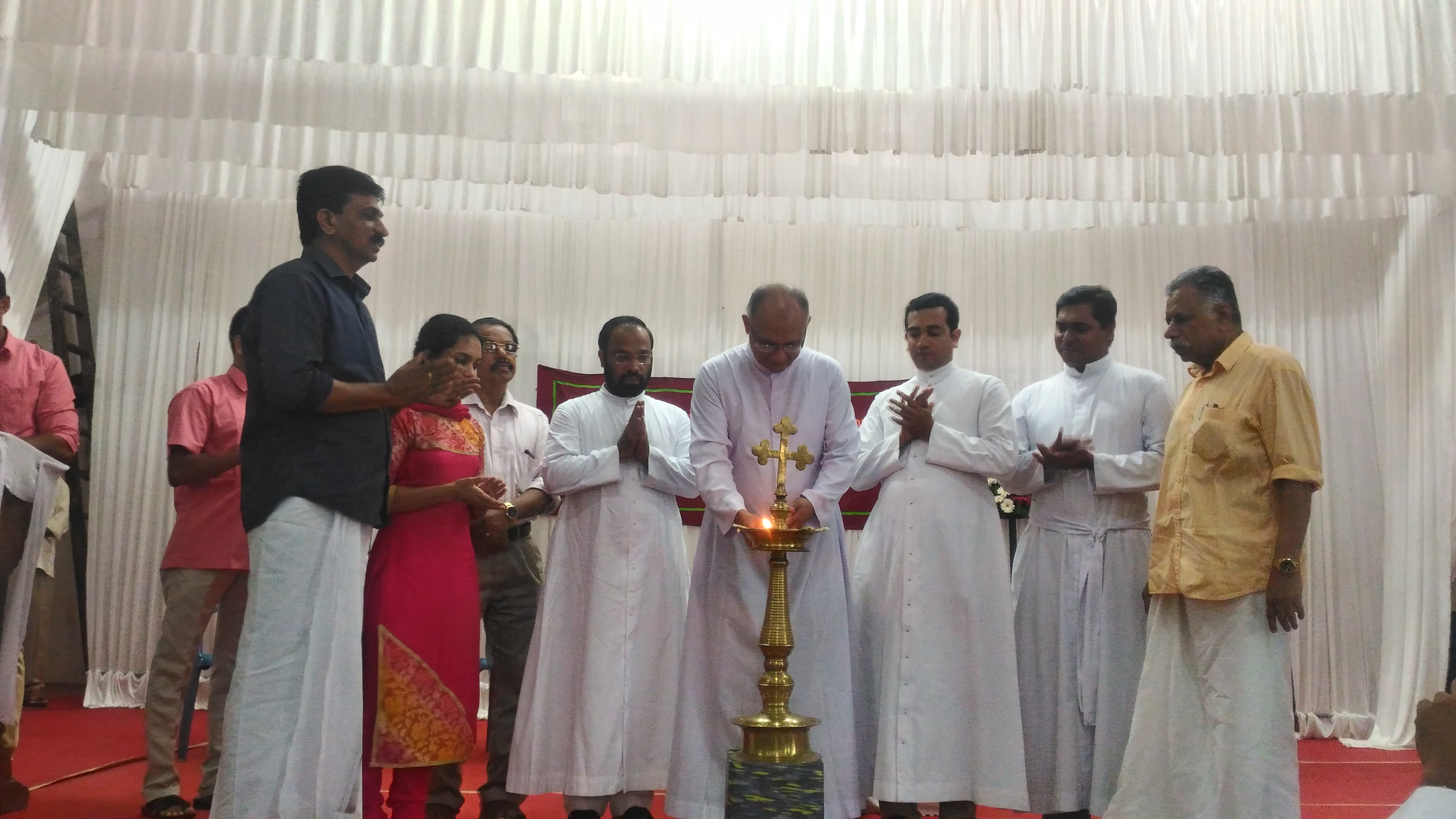 switch on ceremony of illumination of St. Thomas Cathedral in connection with 8 days of lent is done by DYSP irinjalakuda. After the evening Holy Mass at 6.00 O' Clock was the graceful time selected for this luminous event. Cathedral professional C.L.C. president Mr. Tomy welcomed all. Esteemed presence and words of Cathedral vicar fr. Joy Kadambatt made the event more spiritual.